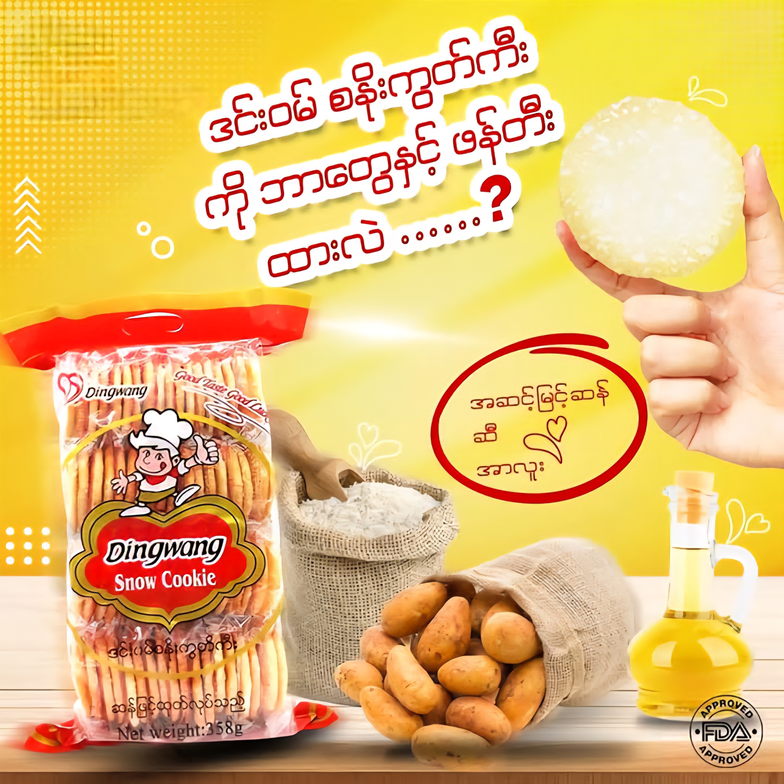 • PRODUCT TYPE: 510 GramsDingwang Snow Cookie is a baked puffed rice cracker that offers a light and crispy snacking experience with traditional flavour