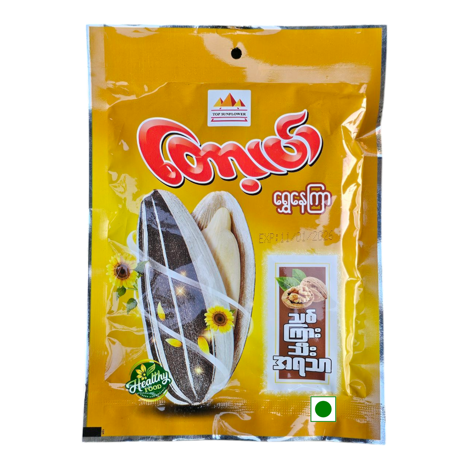 Discover the delightful crunch of Top Sunflower Premium Roasted Sunflower Seeds walnut flovor from Myanmar. These carefully selected and perfectly roasted sunflower seeds come in a convenient pack, ideal for snacking or adding to your favourite recipes. The seeds are processed to maintain their natural nutritional value and distinctive flavour profile. Each golden kernel is packed with a rich, nutty taste that makes them perfect for direct consumption, as a topping for salads, or as an ingredient in baking. The resealable package helps maintain freshness and makes it easy to store. These premium-quality sunflower seeds are a popular choice for health-conscious snackers and cooking enthusiasts alike. Whether you’re looking for a wholesome snack or a nutritious addition to your meals, these roasted sunflower seeds are a versatile choice that delivers both taste and satisfaction.